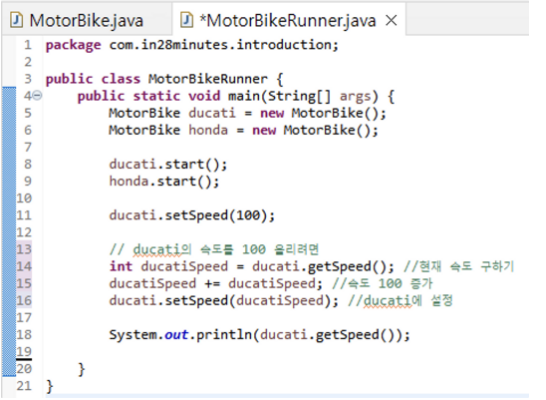 즉 MotorBike 클래스 밖에서 speed 변수에 접근할 수 없는 것 !!