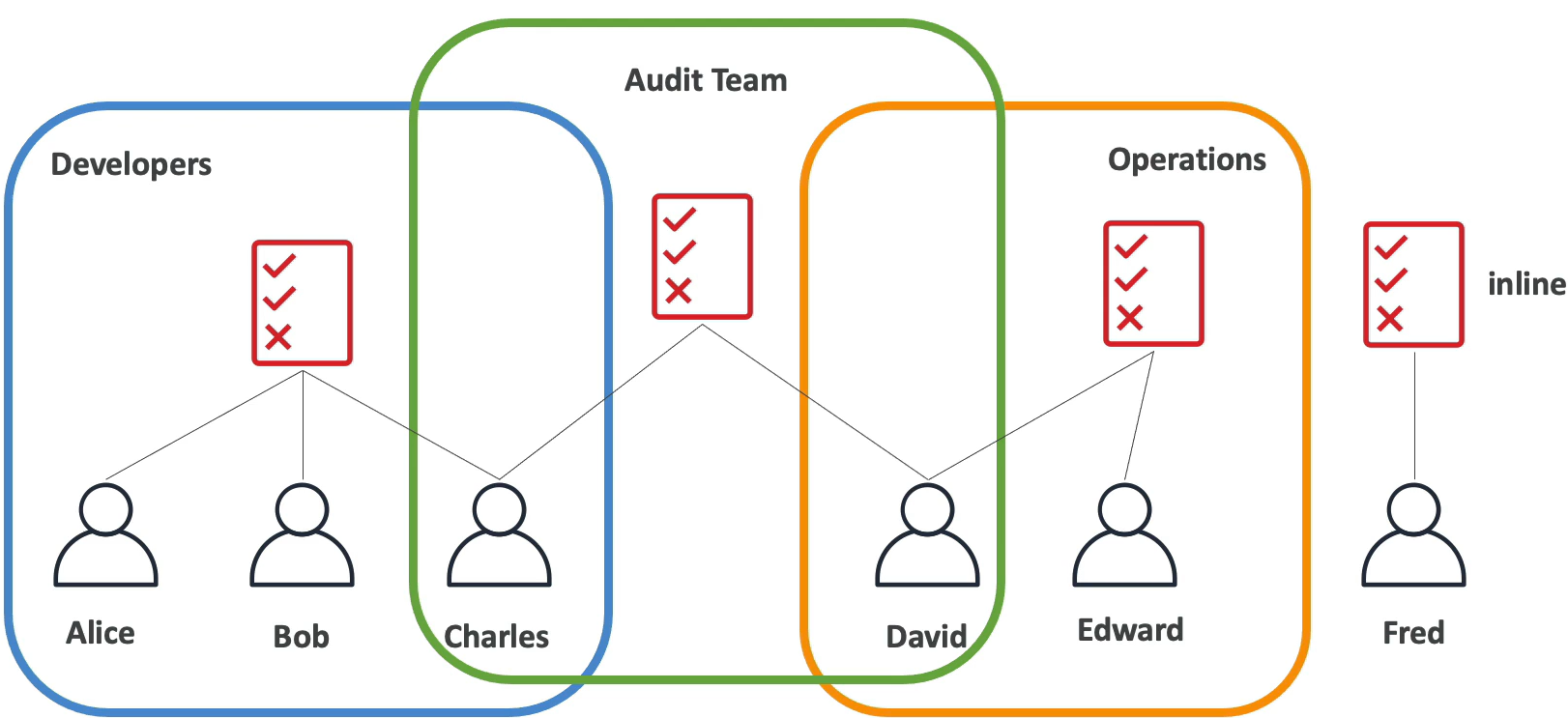 - 그룹에는 사용자만 배치할 수 있음. 다른 그룹을 포함시킬 수 없음