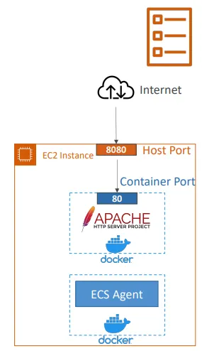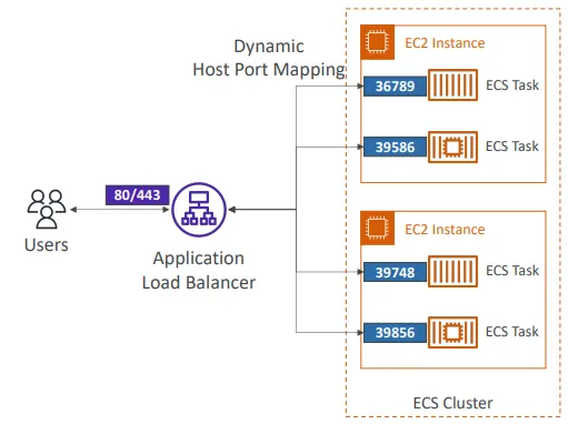 - 새로운 Docker 컨테이너는 EC2 인스턴스들에 배포되며, 각 인스턴스에 있는 ECS 에이전트를 통해 클러스터에서 관리된다.
