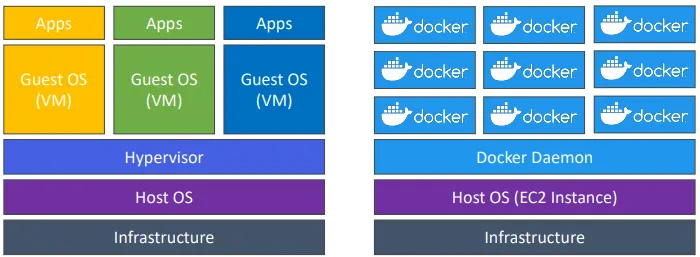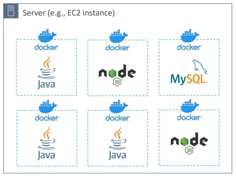 - 예를 들어, EC2 인스턴스 또는 다른 서버에서 Docker를 실행하면, 여러 개의 컨테이너를 동시에 실행할 수 있다.