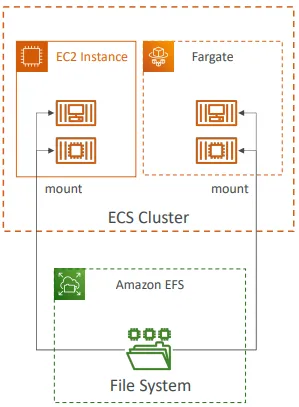 - EFS는 EC2 시작 유형과 Fargate 시작 유형 모두에서 사용할 수 있으며, 다중 가용 영역(AZ)에 걸쳐 데이터를 공유할 수 있다.