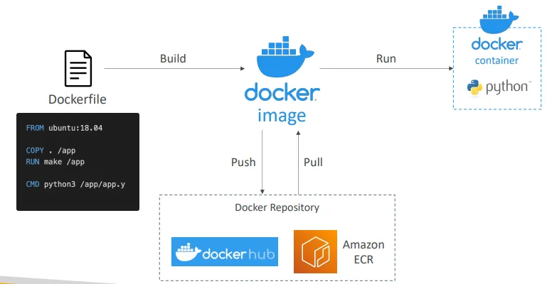 - Docker 이미지는 Docker 리포지토리에 저장되며, 이는 Docker Hub 또는 Amazon ECR과 같은 퍼블릭 또는 프라이빗 리포지토리다.