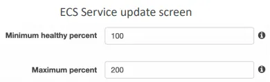 예시: 현재 서비스에 9개의 태스크가 실행 중이라면, 100% 실행 용량 상태이다. 업데이트를 진행할 때 최소 퍼센트를 100%로 설정하면, 실행 중인 태스크가 모두 유지된다.